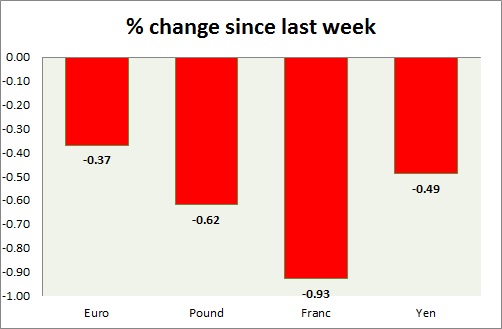 Strength meter (since last week) – Euro -0.37%, Franc -0.93%, Yen -0.49%, GBP -0.62%