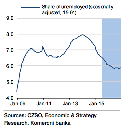 "... we see the share of unemployed remaining at 5.9% despite unfavourable seasonal factors pushing the measure down another tick, when adjusted for calendar effects", says Societe Generale in a research note.