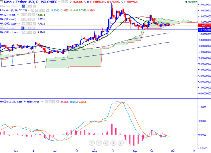 The pair is trading narrow range between USDT11.74 and USDT11.25 levels (Poloniex). It is currently trading around USDT11.58 at the time of writing.