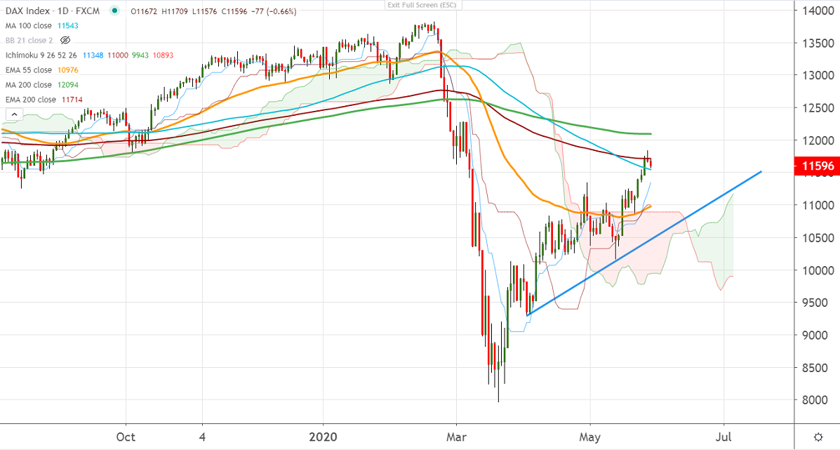DAX 30 has halted its 10-days of a winning streak and started to decline from high 11837. The renewed US-China trade tension is putting pressure on global stock markets. Markets eye today's Trump speech onus-China deal for further direction. The index hits an intraday low of 11576 and is currently trading around 11610.