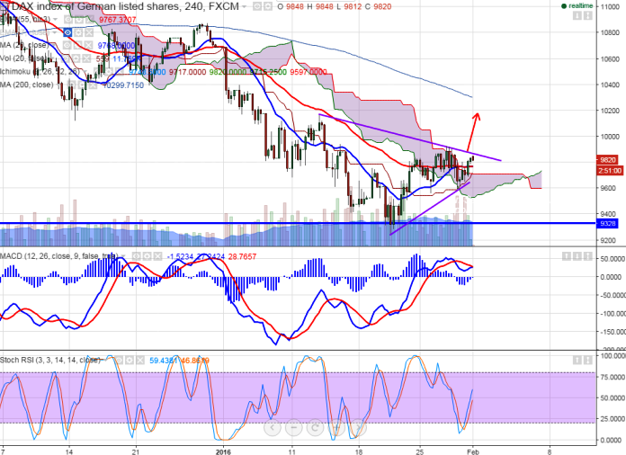 - DAX is facing strong resistance around 9878 and any further bullishness can be seen only above that level. Any break above 9878 will take the index to next level 1000/10165.