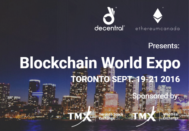 Decentral, a Canada-based innovation hub, and Ethereum Canada have announced that they will host the largest blockchain trade show – Blockchain World Expo in Toronto on Sept. 19-21, 2016.