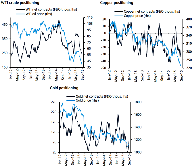 Copper: Copper net shorts were pared from very high levels, it has been a good week for copper as the prices stated regaining to one and half month highs at 2.437. Copper prices have been under heavy selling pressure in recent months as fears of a China-led global economic slowdown spooked traders and rattled sentiment. Prices of the red metal earlier sank to a six-year low of $2.251 as concerns over the health of China's economy and steep declines on Chinese stock markets dampened appetite for the red metal.