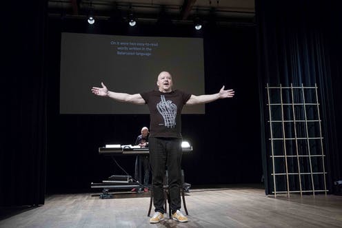 Khalezin repeats the chants of the protestors, encouraging the Melbourne audience to join in and to find synergy with the mood and meaning of protest: “I am free, I am free, I am free”. After several attempts at trying to rouse the theatre, Khalezin cheekily dismisses the feeble response with a wry throw-away line, “we’re in Melbourne after all!”