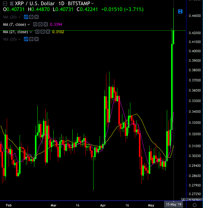 As a result of the above driving force, XRPUSD (ripple) has constantly been spiking higher from the last couple of weeks, posted almost mammoth 43% in just 3 weeks.