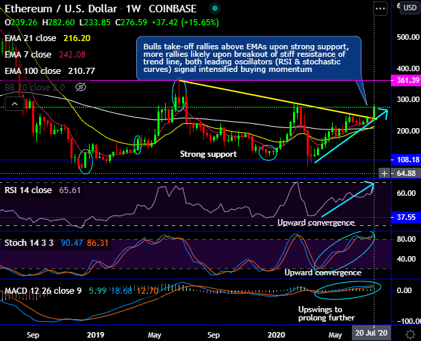 Ethereum’s minor and intermediate trends have been impressive of late, ether’s price has surged commendably (especially for this week, 15% jump) and it has been foreseen well in advance by our Econotimes team. Accordingly, the suitable long hedges have also been advocated in our recent post, the underlying price is edging higher towards $290 levels as anticipated, the rest is history.