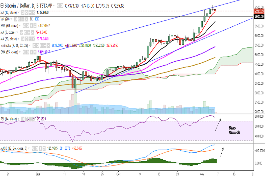 Bitcoin price skyrocketed last week from around 6000 levels to near 7600 levels (Bitstamp).