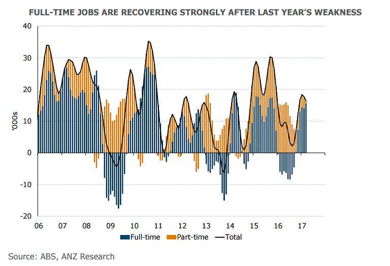 A stubbornly low inflation would have the bank preferring to keep monetary policy as accommodative as possible. But an overheated property market would seem to require higher rates to tame the risks associated with high and rising levels of indebtedness. The latest jobs data would cheer up the Reserve Bank and may keep the doves on the RBA's monetary policy board sidelined.