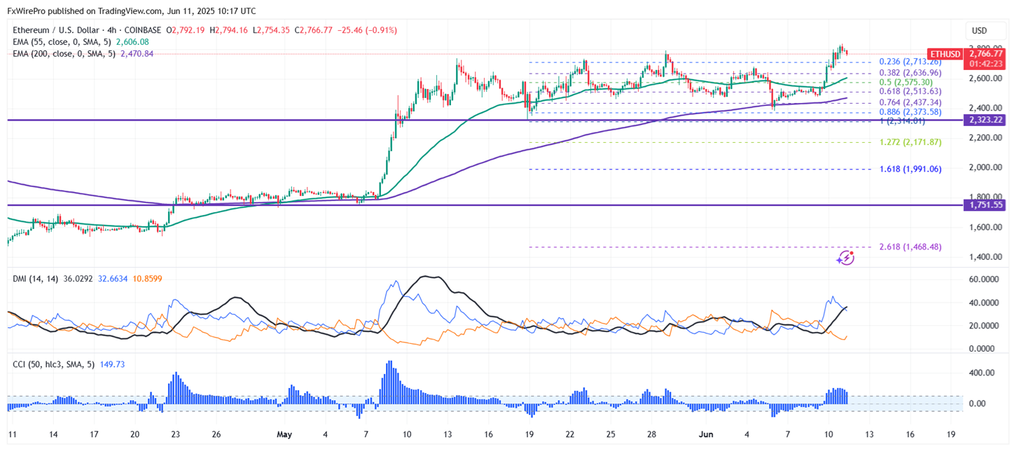 ETHUSD gained nearly $450 after Aktin’s vision sparked optimism in 6DeFi markets. It hit a high of $2834 yesterday and is currently trading around $2767.