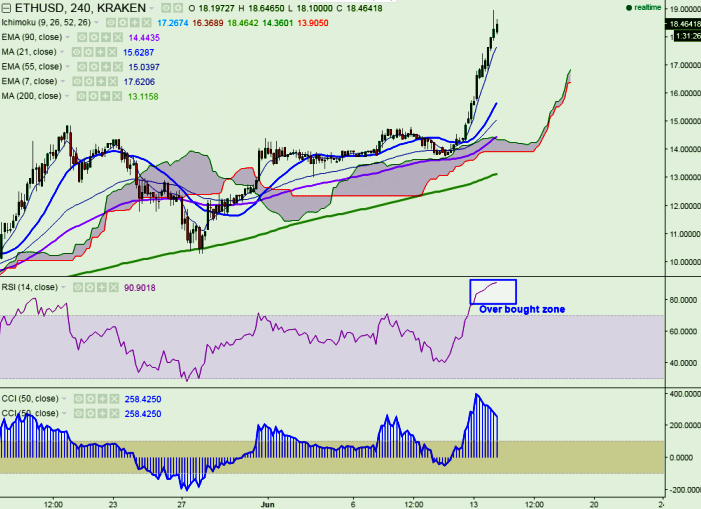 Riding high on newly found momentum, ETH/USD rose to an all-time high of 18.96 levels (Kraken) on Tuesday. It currently trades at 18.61 levels, at the time of writing.