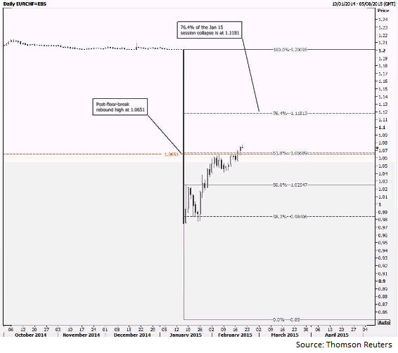 - Pair's prices have cleared both the initial post-floor-break bounce high at 1.0651 and the 61.8% of the Jan 15 collapse session at 1.0669 this week