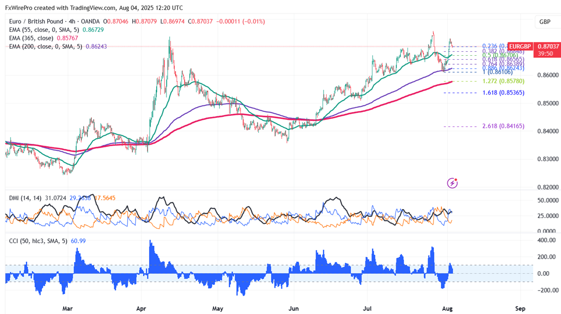 EURGBP showed a minor sell-off ahead of the BOE monetary policy decision. Intraday bias remains bullish as long as support 0.8600 holds. It hits an intraday high of 0.87306 and is currently trading around 0.870361.