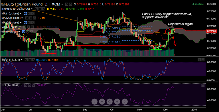 - EUR/GBP is currently trading at 0.7226, with immediate support on the downside at 0.7220 (Dec 8 low) and resistance at 0.7274 (Daily Cloud Top).