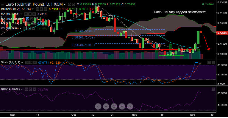 - Rally in the cross post ECB was capped below the daily cloud which is encouraging enough for a resumption of the downtrend