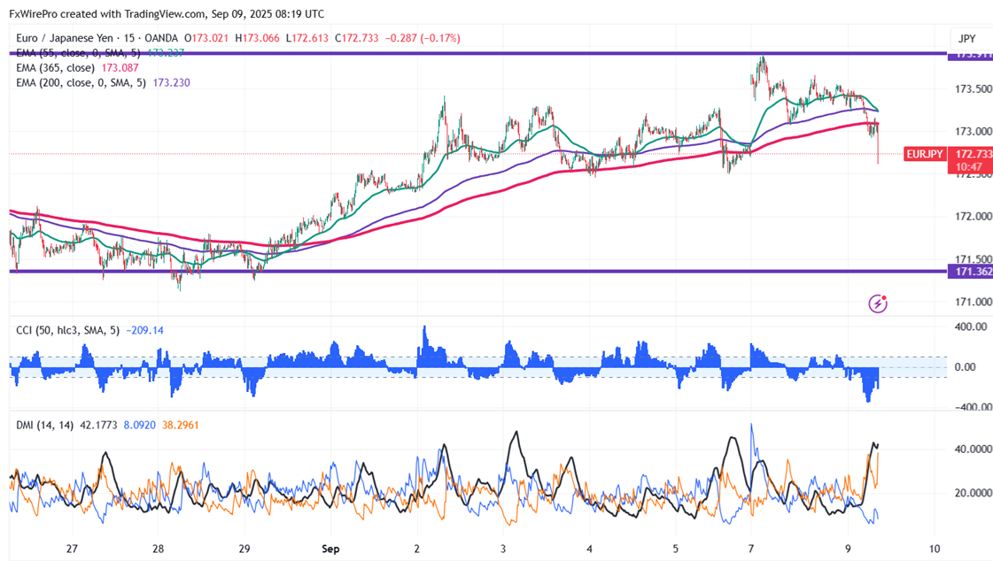 - Immediate Support: At 172.80 if breached, the pair could fall to 172.40/171.80/170.80/169.70/169/168.70/168.45/168.