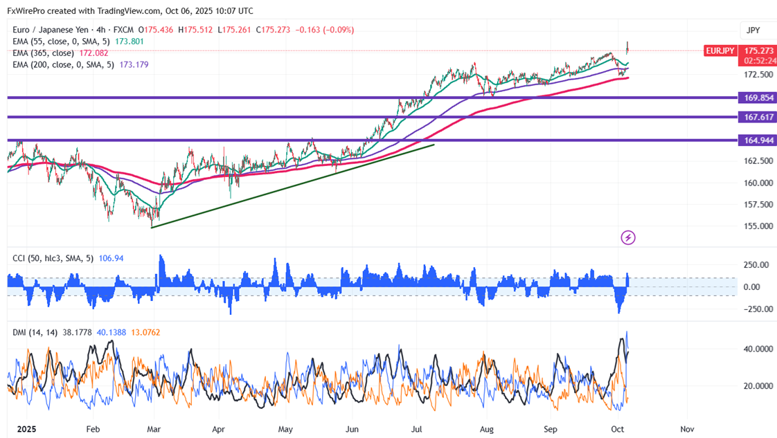 - Immediate Support: At 174.70, if breached, the pair could fall to 173.78/173/171.80/170.80/169.70.