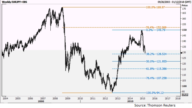 - 128.52 - 38.2% retrace of the 94.12 to 149.49 - 2012 to 2014 gains