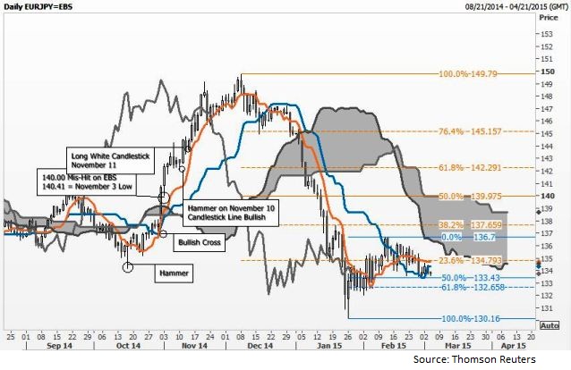 Traders are long at 133.60 for gains to 135.00 50% retrace of the 130.16 to 136.70 up-leg, 133.43, strengthens in short-term Tenkan & kijun lines are aligned positively, upside potential positive A daily close below the 133.43 level