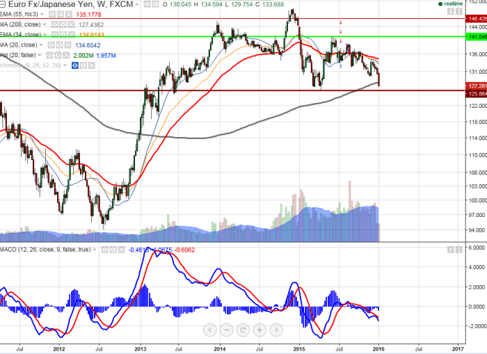 - EUR/JPY hits fresh 9 month low on account of global equities sell -off pair has broken major support 128 and declined till 127.31. It is currently trading at 127.42.