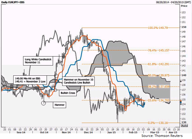 - 134.20 = 38.2% of the 130.16 to 136.70 up-leg