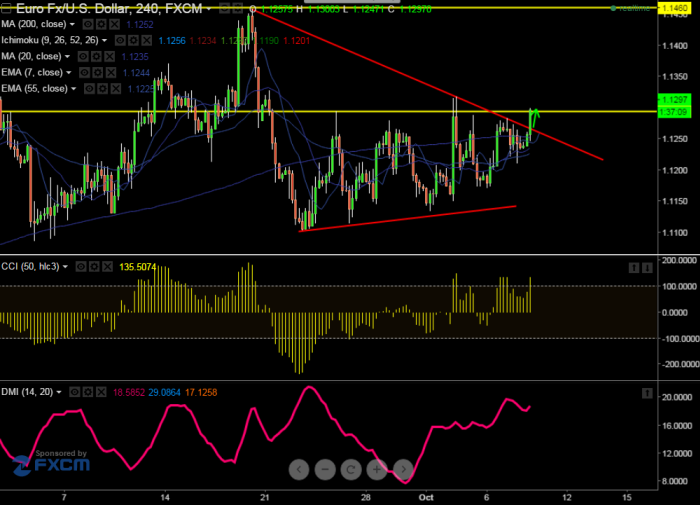 EUR/USD is facing major trend line resistance at 1.12760 (trend line joining 1.14592 and 1.13180) and break above confirms short term bullishness, a jump till 1.1340/1.1370 is possible.