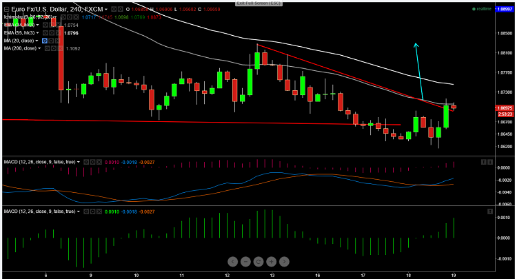 - EUR/USD has broken minor trend line resistance around 1.0700 (trend line joining 1.08292 and 1.08068) and a jump till 1.0770/1.0800 is possible .