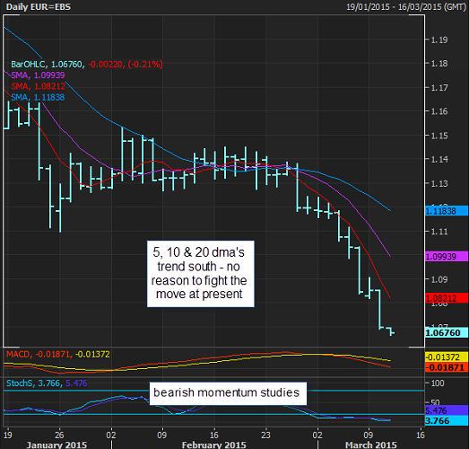 Bearish trend remains strong - targets 1.0500 Mar 03 low 5, 10 & 20 daily weekly & monthly MA's trend south Asian 1.0666/1.0697 range is initial support/resistance