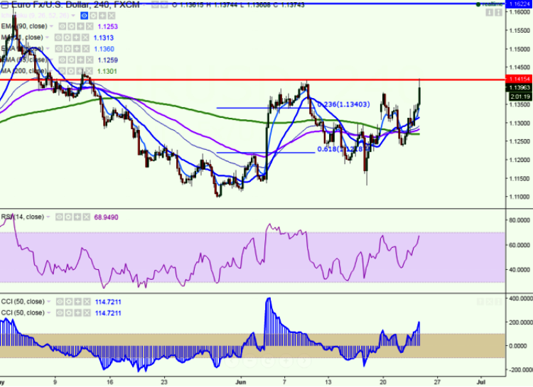 - EUR/USD breaks above 1.1400 handle and jumped till 1.4022 at the time of writing. It is currently trading around 1.13925.