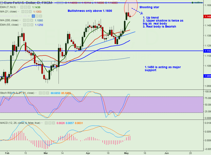 - The pair has retreated after making a high of 1.16161 yesterday.It is currently trading around 1.14890.