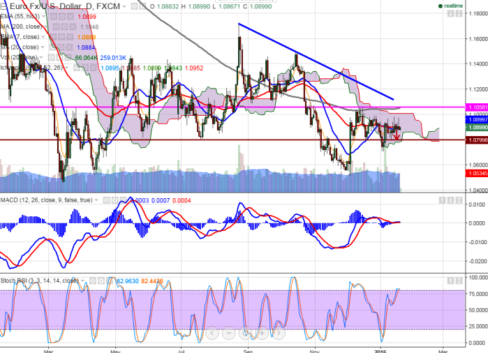 EUR/USD is trading in very narrow range between 1.0800-1.1000 for the past 10 trading session. Market awaits ECB first policy meeting of this year 2016 for further direction.