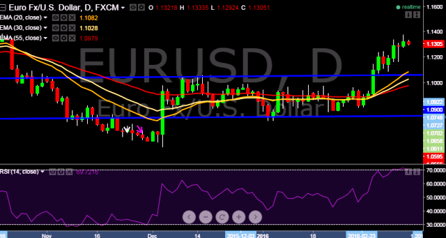 We prefer to take long position in EUR/USD around $1.1300, Stop loss $1.1150 and target $1.15 marks.