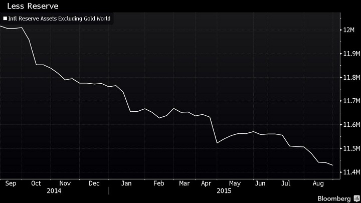 - According to latest data from International Monetary Fund (IMF), global reserve across central banks are in decline, especially across emerging markets. As per latest data reserves has fallen quite rapidly over the past year from their peak of 11.98 trillion to 11.43 trillion as of August leading to a quantitative tightening.