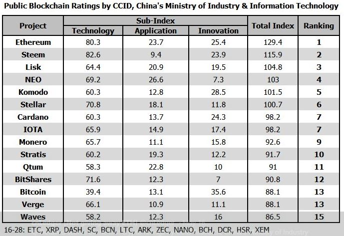 Following Ethereum are Steem, Lisk, NEO, and Komodo with a respective score of 115.9, 104.8, 103.0, and 101.5. However, experts and the cryptocurrency community were baffled as to why the Chinese government placed Steem on second place.