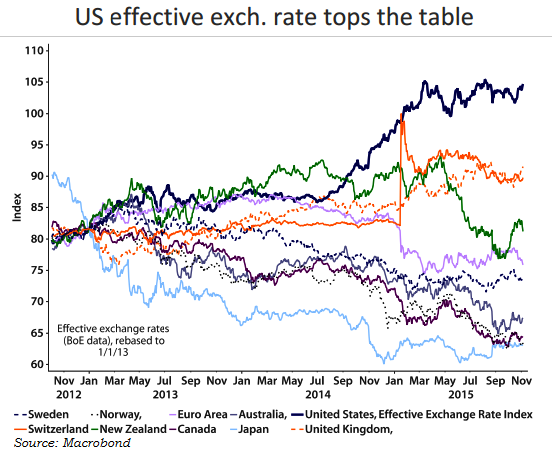 Interest rate futures point to a 66 percent probability that the Fed will raise rates at its December 16-17 meeting, putting policy divergences between it and other big central banks firmly in play. Fed's hike is likely to be followed by the BoE sometime next year. All G10 central banks with the exception of the BoE and the Fed have either cut interest rates or maintained a QE programme. Going forward there is a good chance of further easing from the BoJ, RBA, RBNZ, Norges Bank, SNB and the Riksbank. USD is poised to move higher unless the FOMC counters the build-up of long USD positions with a paring back of hawkish commentary.