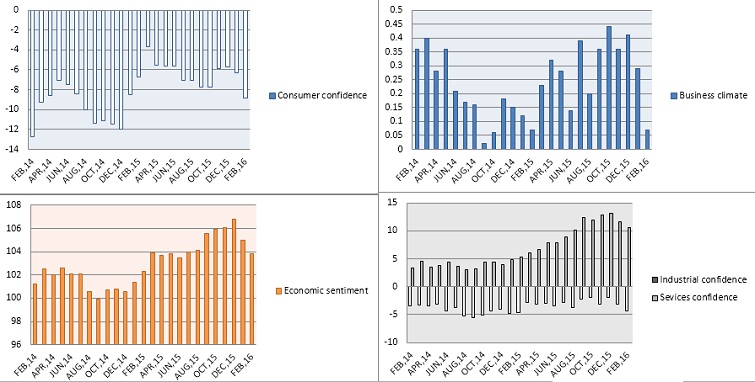 - Euro zone business climate dropped to 0.07 in February, lowest reading since February, 2015.