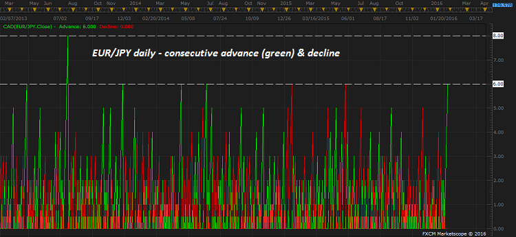 In the short run, however it is important to note that Euro rose against Yen for six consecutive days for the first time since June 2014.