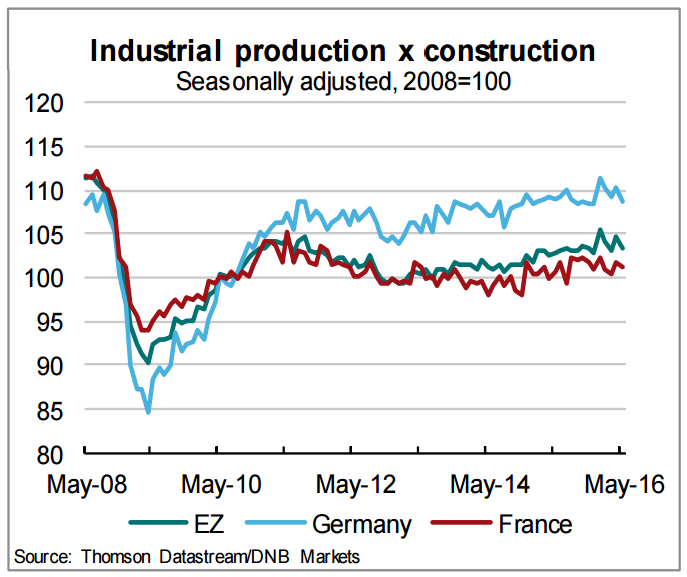 The indications for the second quarter are less encouraging. Data showed that growth was slowing even before the UK voted to leave the European Union on June 23rd. The more than expected drop adds to signs of a second quarter slowdown. The disappointing data follow survey evidence showing business optimism in the currency bloc sliding to the lowest since 2014 as political uncertainty intensified in June.