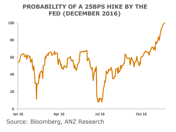 Minutes of the November Federal Open Market Committee’s (FOMC) meeting released on Wednesday were largely unexciting from a near-term policy perspective. After the recent Congressional testimony of Chair Yellen and statements from other Fed officials, the market has fully priced in a rate hike in December. Minutes just cemented December rate hike expectations but did not provide much fodder for markets.