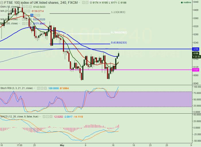 - FTSE100 has recovered after making a low of 6060 yesterday. It is currently trading around 6183