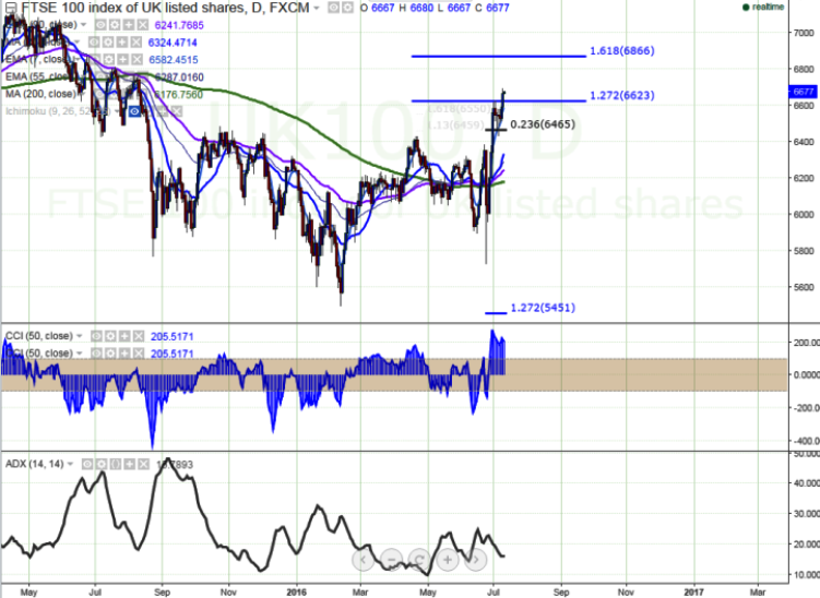 - The index has broken major resistance around 6625 and jumped till 6696. It is currently trading around 6676.