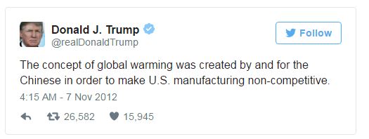 It is hard to imagine a Trump presidency that contributes positively on climate change. In one of his Twitter tirades, Trump announced: