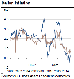 "Italian HICP inflation is expected to remain unchanged at 0.3% yoy in August. Similar to the case in other Euro area economies Brent and gasoline prices continue to slide, we expect the stable food prices alongside the core metric to underpin the headline inflation. Moreover, Italian HICP inflation is likely to average 0.4% in 2015 and 1.4% yoy in 2016. The core component should average 0.8% in 2015 and 1.2% in 2016", states Societe Generale.