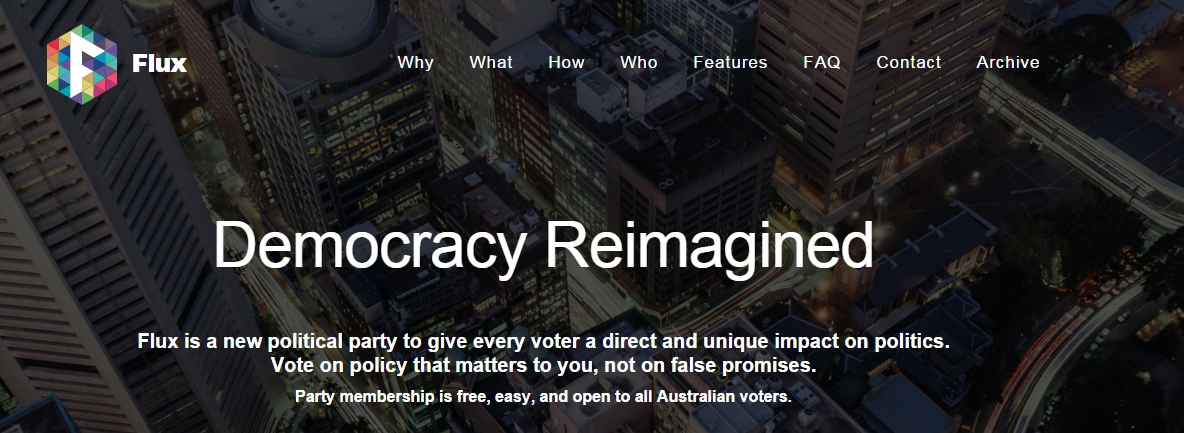 “Flux is an incremental upgrade to democracy designed to redistribute political power, maximise participation, remove bad policy, and empower voters”, the website says.