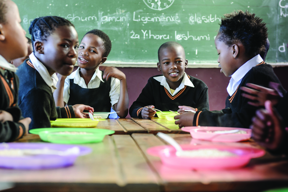 Children receiving the National School Nutrition Programme get a mid-morning lunch meal consisting of a protein, carbohydrate and vegetables. The breakfast is made up of a fortified cereal before the school day starts.