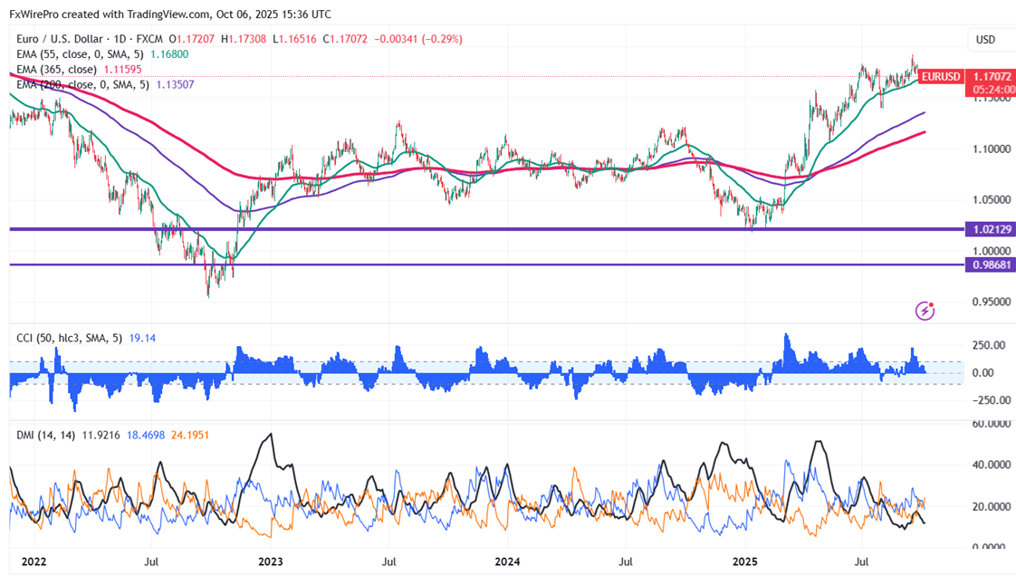 The pair is holding above the 55 EMA, 200 EMA, and 365 EMA in the 4-hour chart. Near-term resistance is seen at 1.17650; a break above this may push the pair to targets of 1.1800/1.1835/1.1850/1.1920. On the downside, support is seen at 1.1640; any violation below will drag the pair to 1.15750/1.1545/1.1480/1.1435.
