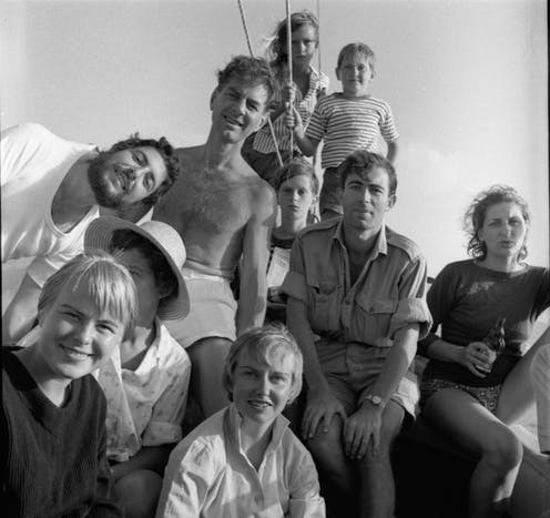 Douskos 1960, including Redmond Wallis and Leonard Cohen (second and third left). Photograph by James Burke. Photograph by James Burke, Getty images.