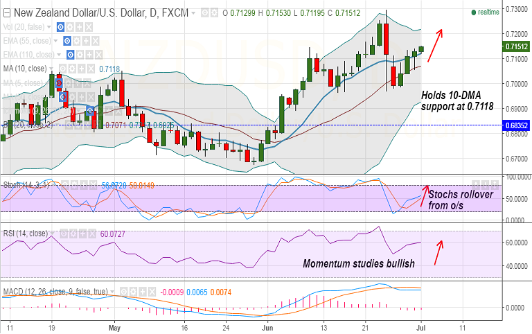 Recommendation: Good to go long on dips around 0.7145/50, SL: 0.71, TP: 0.7190/ 0.72/ 0.7220