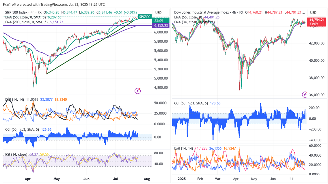 The pair holds above the short-term (34, 55 EMA) and long-term (200 EMA) in a 4-hour chart.