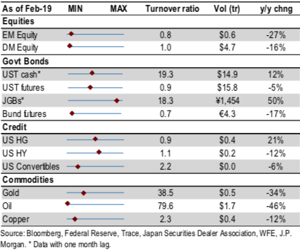 Bunds, Gold, Oil, and Copper are futures. Gold includes Gold ETFs. Min-Max chart is based on the Turnover ratio.