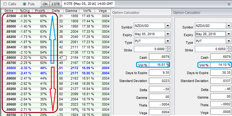 Since, ATM IVs of 1W expiries are at 16.98% and 14.08% for 1M tenors, so the volatilities implied in FX option market of this pair is likely to perceive higher volatility times which is good news for option holders.